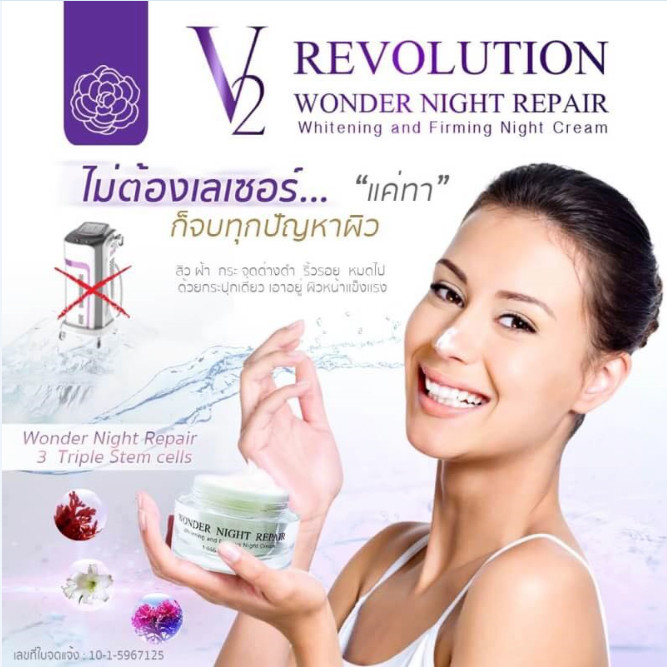 ครีม V2 Revolution Wonder Night Repair ครีมหน้าเด็ก ครีมวีทู สเต็มเซลล์ ครีมV2 ครีมหญิง รฐา เก็บเงินปลายทาง